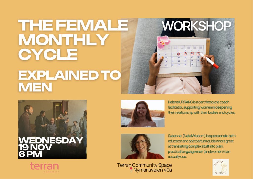 Together with Susanne from Natal Wisdom, I am hosting an event this coming Wednesday for a conversation about the female monthly cycle. Both Susanne and I work with women, and we want to welcome and include men into this conversation too – to better understand, support and connect more deeply with the women in their lives. The evening will be informal and easygoing – a mix of curiosity, playfulness, and honest conversation. Our intention is to demystify the cyclical nature of women and reveal its depth, beauty, and potential.